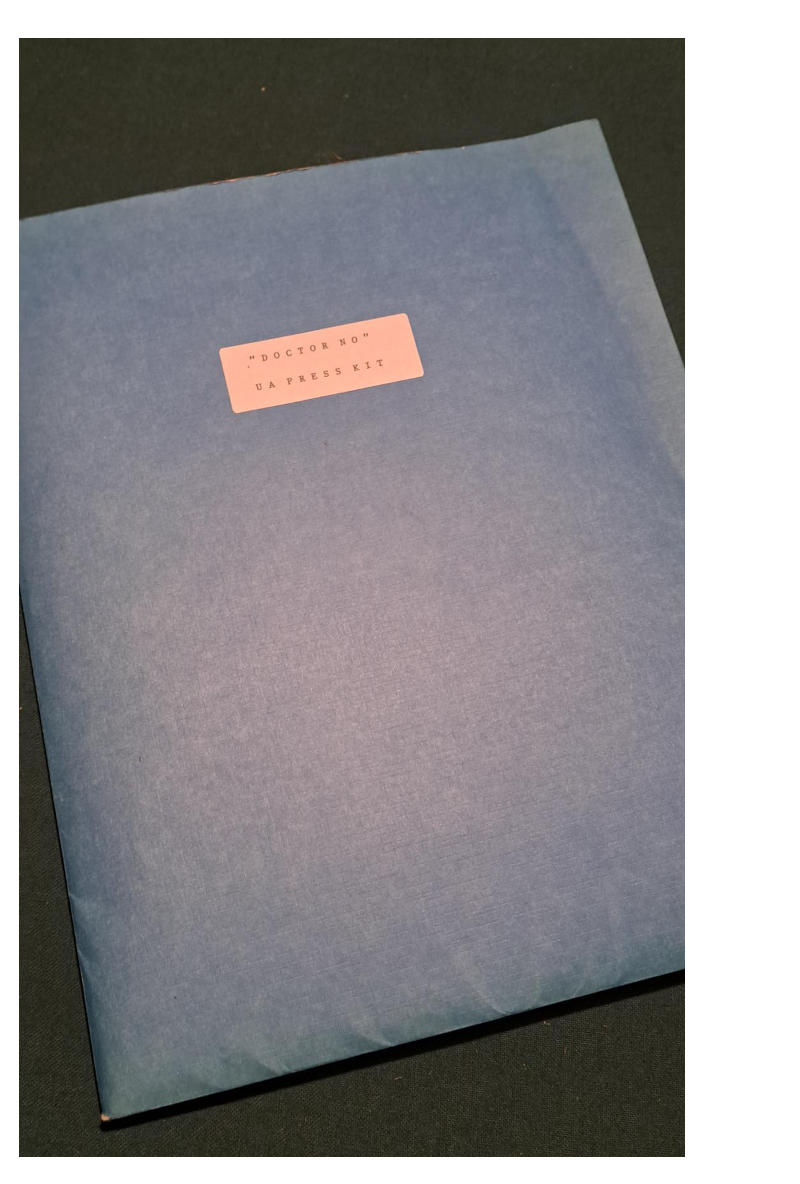 The Press Kit was in a plain blue folder with inside pockets and a label on the front that just read “DOCTOR NO.” Inside were publicity stories very much like the ones in the pressbook, but these were all typed out in multiple pages. There were 4 or 5 b/w stills, a copy of the Signet paperback book and the 45-single of the theme. There were also a set of ad slicks with women posing and saying lines like “James Bond 007 has my number…” They were models, not the actresses in the film. I never saw any of these ads used to promote the film later.