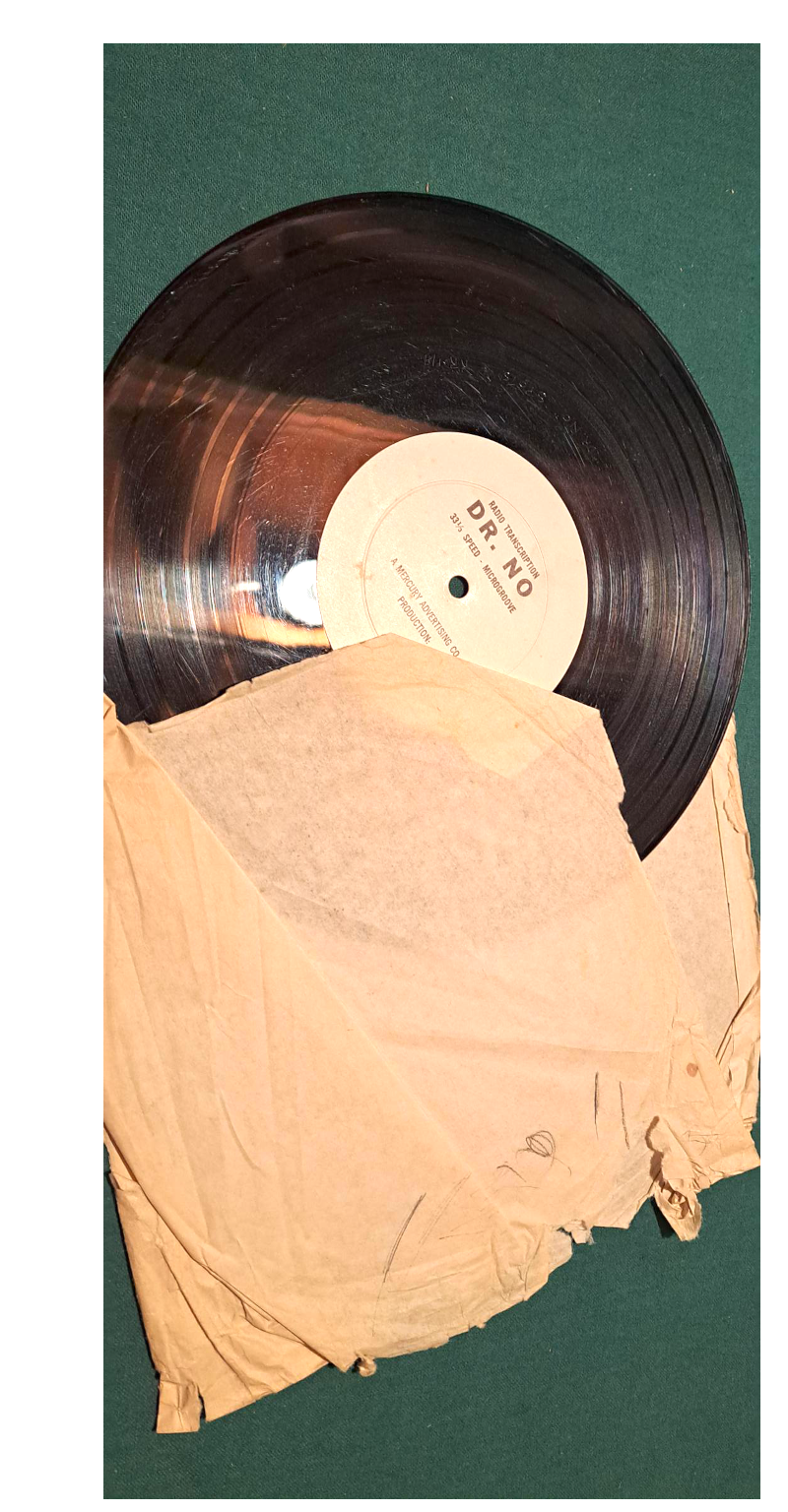 I also snagged a copy of a vinyl record full of radio spots for that film. → It was too big for the Press Kit; I think all of the spots on the disc are in the Media Promo section of the Bond Blu-ray for Dr. No. I’m sure I found the radio album in Dad’s office. Don’t know what happened to the 45, but I no longer have it. The Press Kit folder in these photos is not the original. ↓ I put it together from what I remembered. — Best from Kansas! (snowed in here at 4 degrees!)