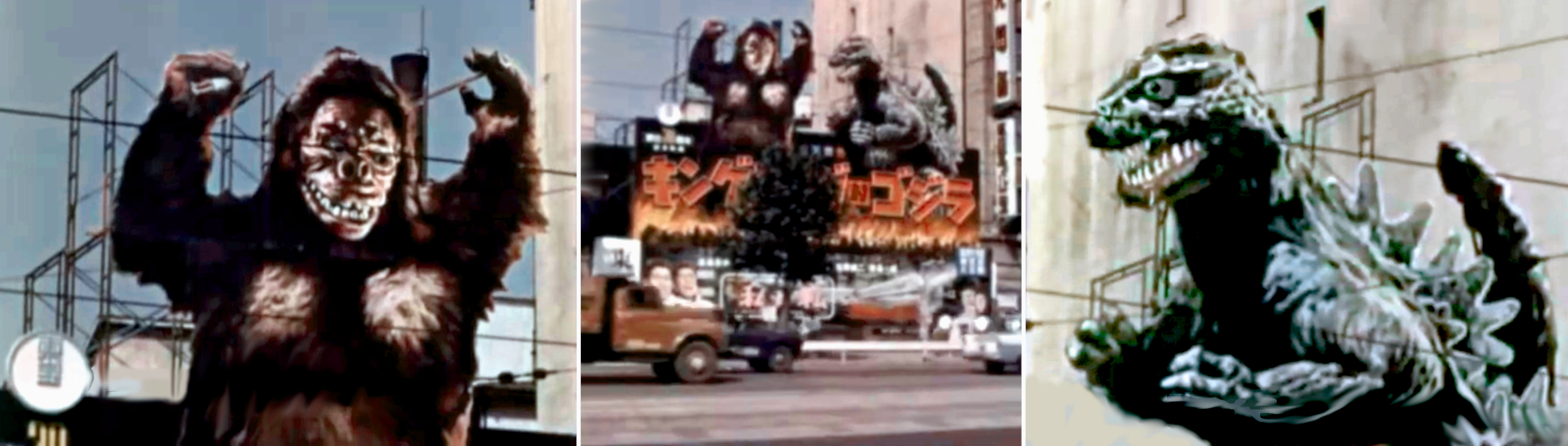 The TV series for the documentary is called At Home Abroad. It was produced by Bing Crosby and hosted by Jack Douglas, who narrates a tour of Japanese movie and TV studios, and lets us ‘meet’ actor Tatsuo Saito and singer Inoue Nobuo. Of big appeal are giant marquee exhibits touting both Japanese and U.S. films; we also see footage of a rehearsal for an action film scene.