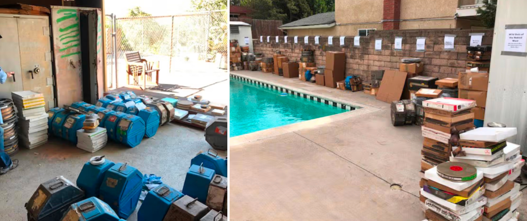 The Museum of Modern Art and The Academy Archive were granted custodianship of the film archives of Russ Meyer, the self-proclaimed nudie filmmaker who passed away in 2004. Ol’ Russ kept a lot of film in his house up in Lake Hollywood, and this MoMA article goes over the investigation of rooms bursting with his work. No nudie glamour, just a lot of cardboard boxes and Goldberg cans. Although we wonder if the pool we see was used for any movie shoots.