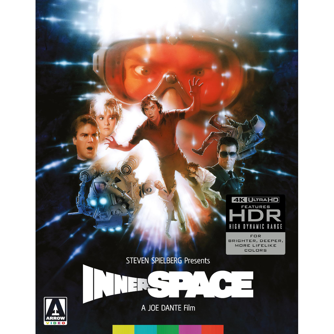 Let’s try this in what I hope is chronological order. On April 27, in 4K Ultra HD, Joe Dante’s comedic winner Innerspace is due from Arrow Films. The dazzling ILM visual effects are pre-CGI, I believe, but the real appeal comes from Dante’s cast — Martin Short, Meg Ryan, Dennis Quaid, Kevin McCarthy, Fiona Lewis — and Robert Picardo, William Schallert, Henry Gibson, Kathleen Freeman and Dick Miller.