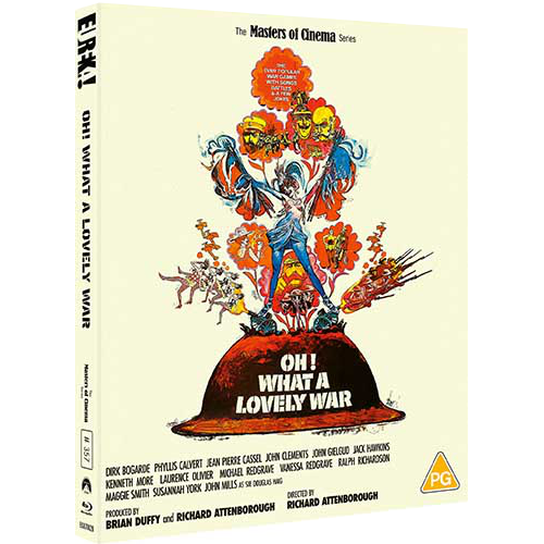 It takes a bit of foreknowledge to appreciate what was originally a musical by Joan Littlewood, that uses music to express the cosmic futility of warfare in World War One. It sank like a stone in the box office of 1969 — in the middle of the Vietnam war. The brilliant novelty is to show the reality of the war through songs sung by the troops — with mordant replacement lyrics. It has a long cast list of English stars doing their bit for pacifism, including a young Maggie Smith as a music hall entertainer. The director is Richard Attenborough, and it’s his first film.