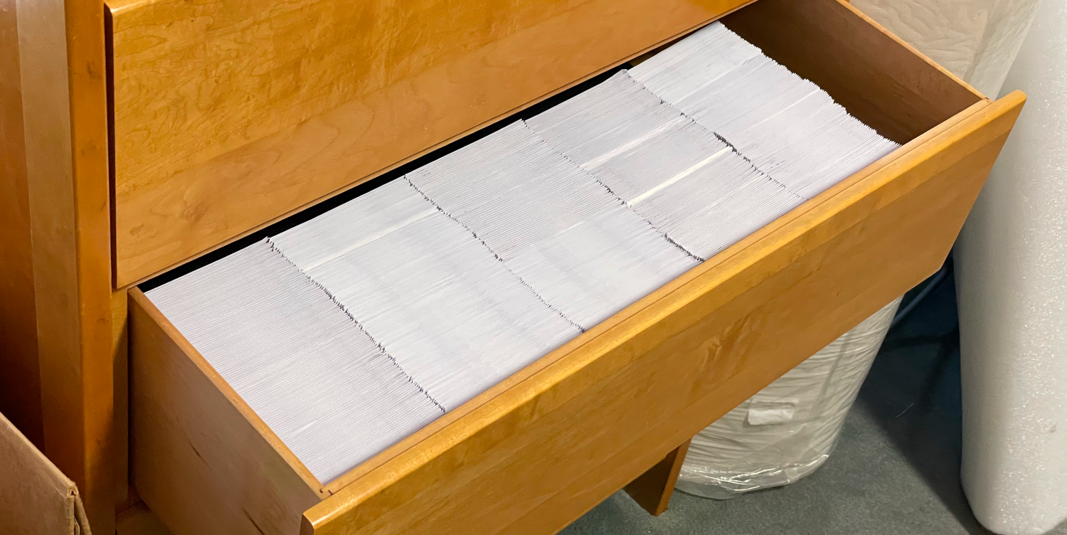 The sleeves and booklets are numbered and stacked in boxes, about a 1,000 titles to a box. We’ll see how well that effort works.