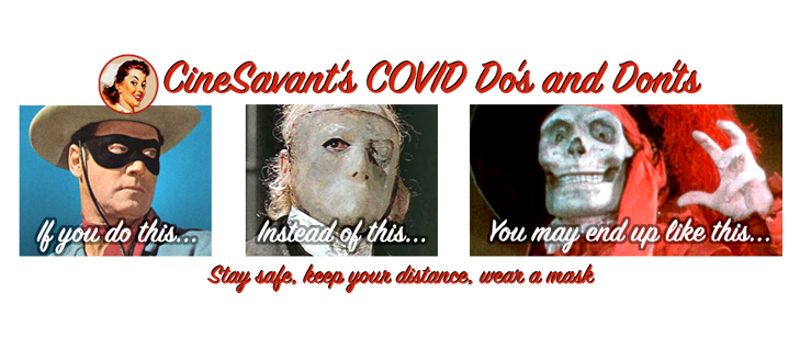 Many thanks to Trailers from Hell’s Charlie Largent for fabricating this new banner and its slogan. Our previous Covid banner anticipated the Second Wave, and it or something worse might still be on the way … but I wanted to Ac-Cent-Tchu-Ate the positive as much as possible, without being too flippant… or grim. This banner is ‘busier’ than the other so I’ll probably shrink it down in size after a couple of weeks. Thanks Charlie!