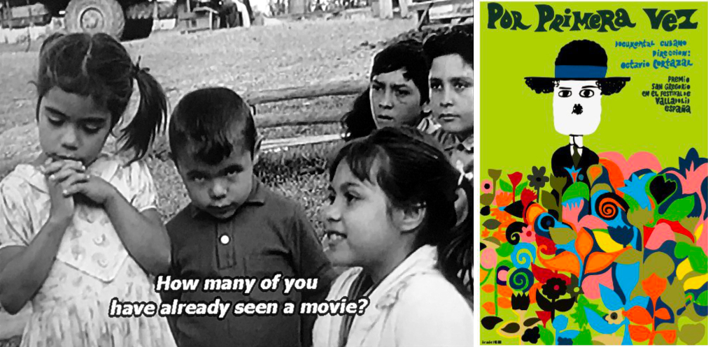 Por Primera Vez translates as ‘For the First Time.’ It’s a simple movie, filmed in a day, showing a mobile movie theater arriving in the Baracoa area of Guant´namo. The show is only a little over ten minutes long, but the last three or four minutes record the faces of villagers, many of them children, watching a motion picture for the very first time. It’s 1967, not 1930.