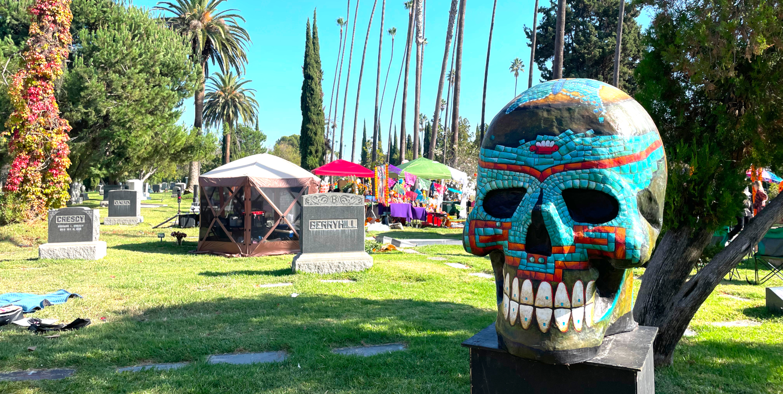 About 6 years ago, before COVID, I posted some photos of the The Hollywood Forever Day of the Dead Celebration very close to home here in Los Angeles. Just up Gower Street and over the fence from Paramount Pictures, the Hollywood Forever cemetery is a reasonably short walk from CineSavant Central. ↑