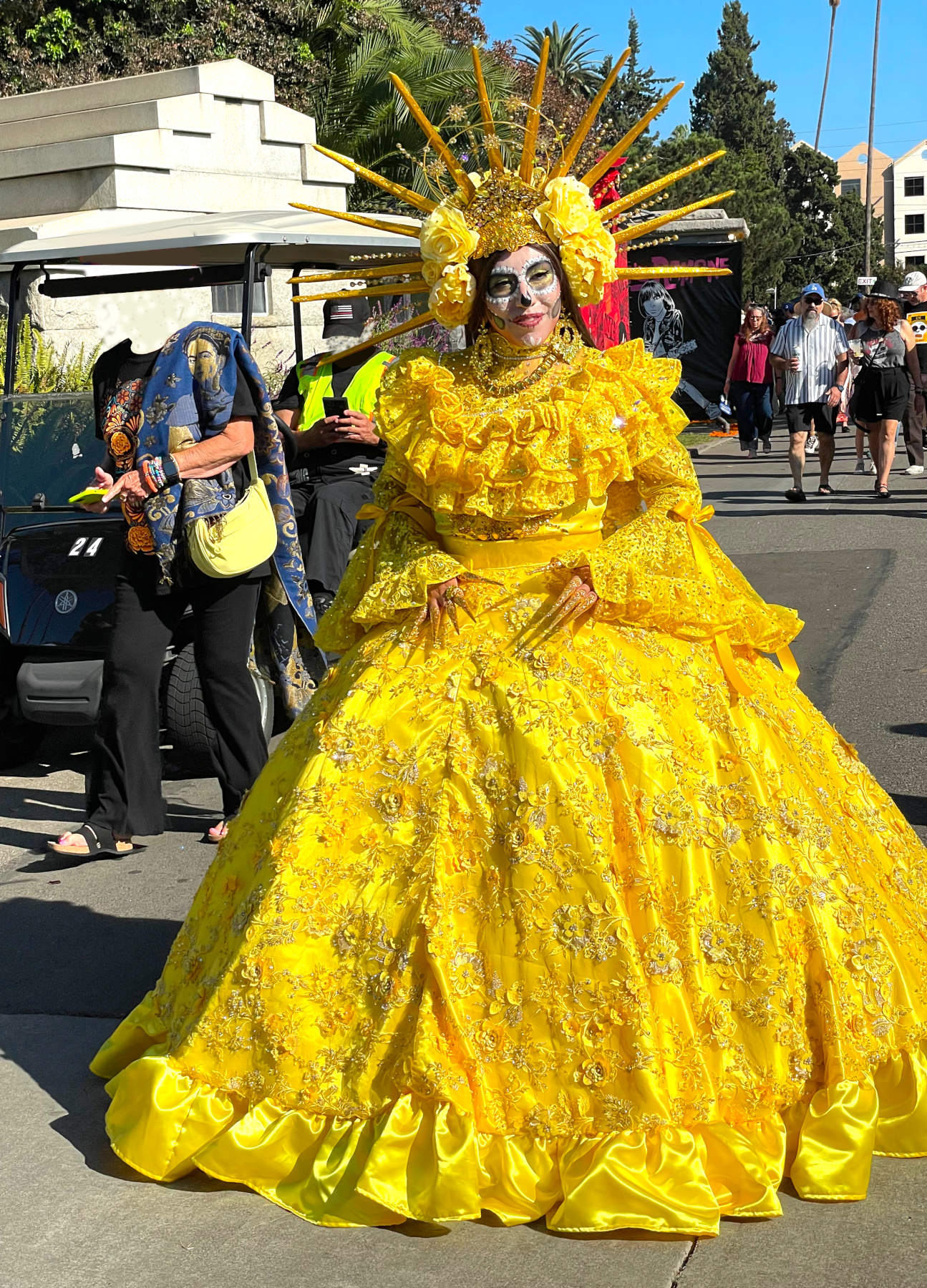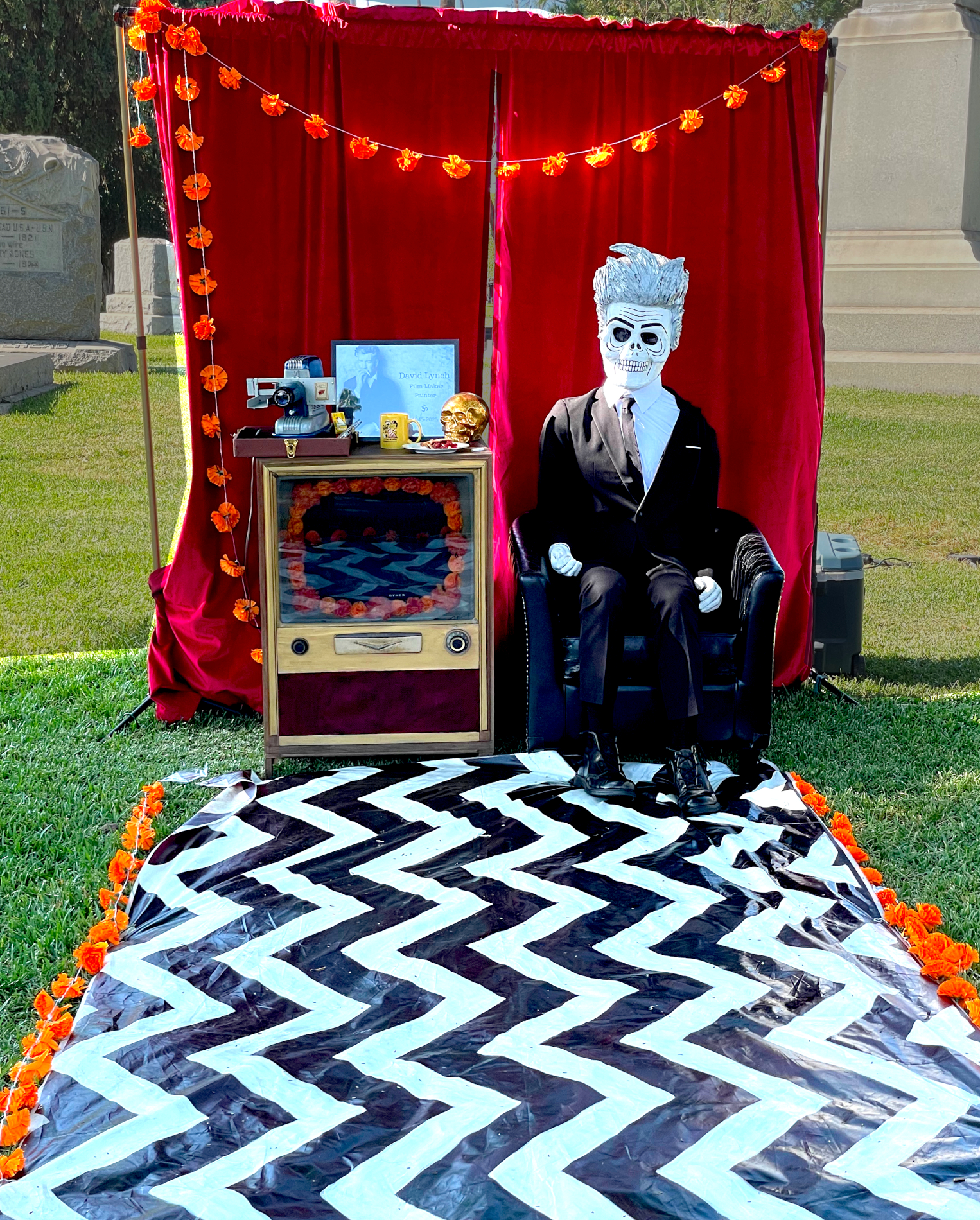 There were some beautiful costumes to look at; here’s just one. I thought this would make for a semi-relevant CineSavant slide show because of several interesting celebrity-aligned not-really-altars that stood out on the cemetery walkways.
