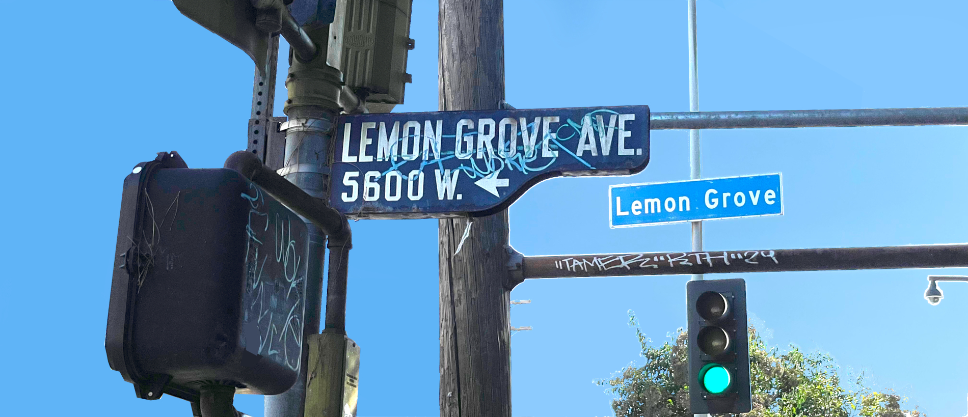 CineSavant correspondents say they like these pix, so here are a couple more. On the walk back home we passed Lemon Grove Avenue, an ordinary residential street that threads its way across Hollywood and comes to a stop on Van Ness where the cemetery begins. Could the ghost of Ray Dennis Steckler be far away? He later relocated to Las Vegas, but this neck of the woods is where he lived and produced his triple-Z movies, including his brain-numbing homage to the Bowery Boys, The Lemon Grove Kids Meet the Monsters.