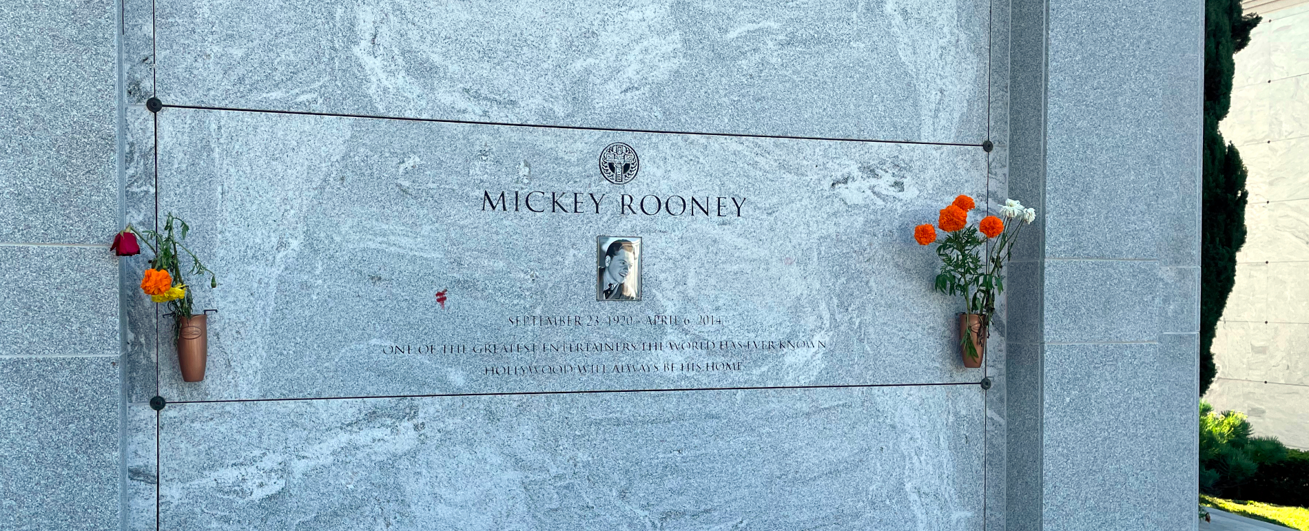 A great many Hollywood personalities have been laid to rest in Hollywood Forever, starting back in the earlier part of the 20th century. Whenever we strolled through the place, we’ve always come across names that meant something personal to us. This photo I actually took long ago. ↑