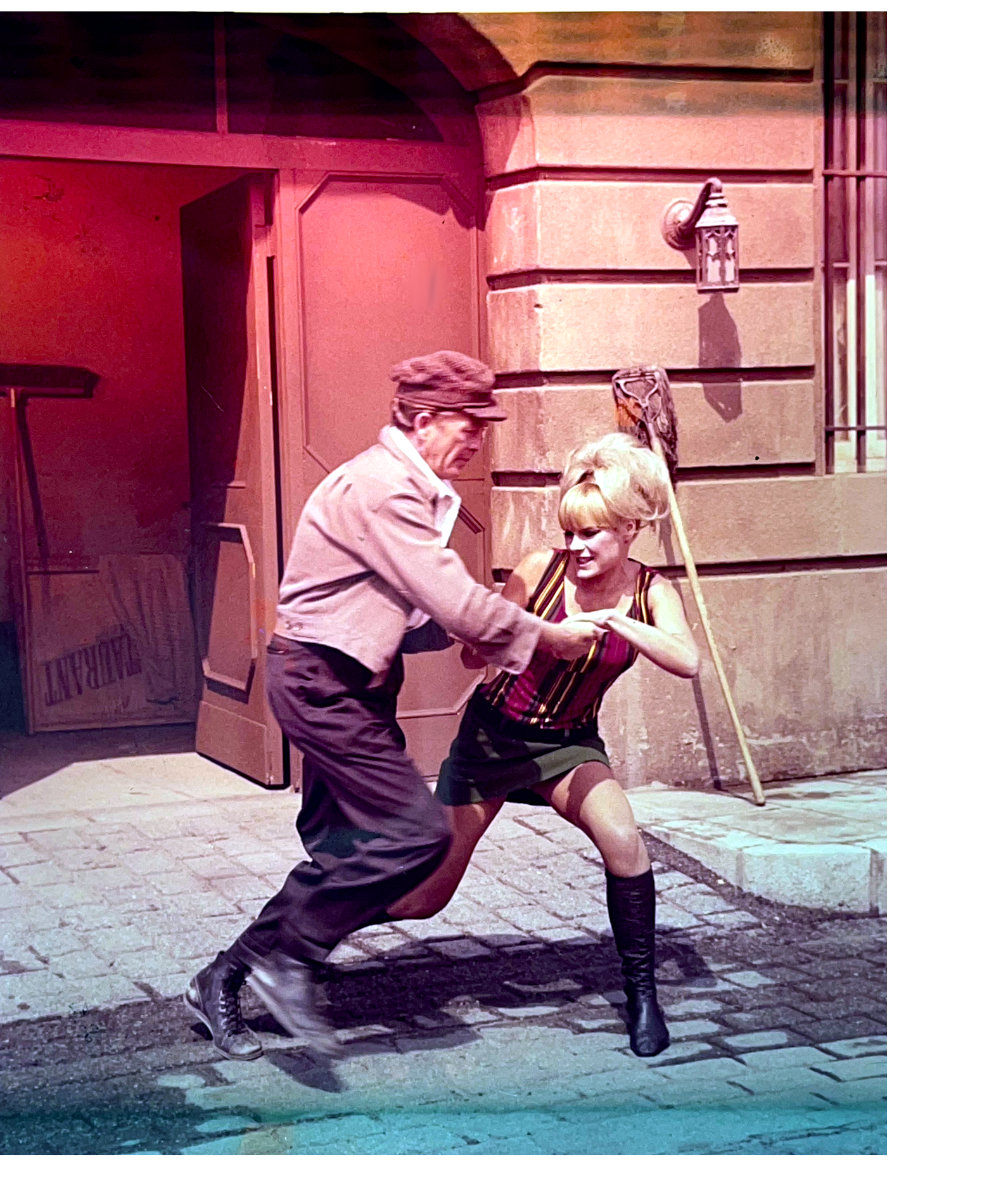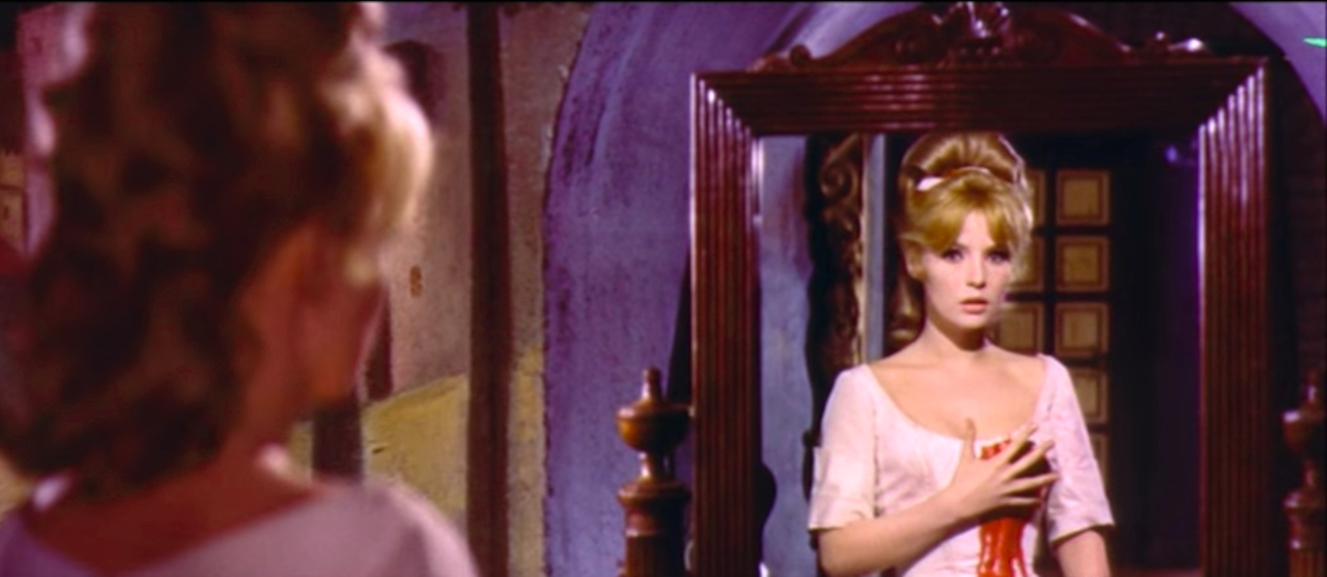 We thought the shot of a woman about to grapple with a man was from some movie or TV movie that wouldn’t be easy to identify, nor likely worth the trouble either. She looked a little like Elke Sommer, but hers was not an unique look in the 1960s, and neither were her hairstyle and the costume she’s wearing.
